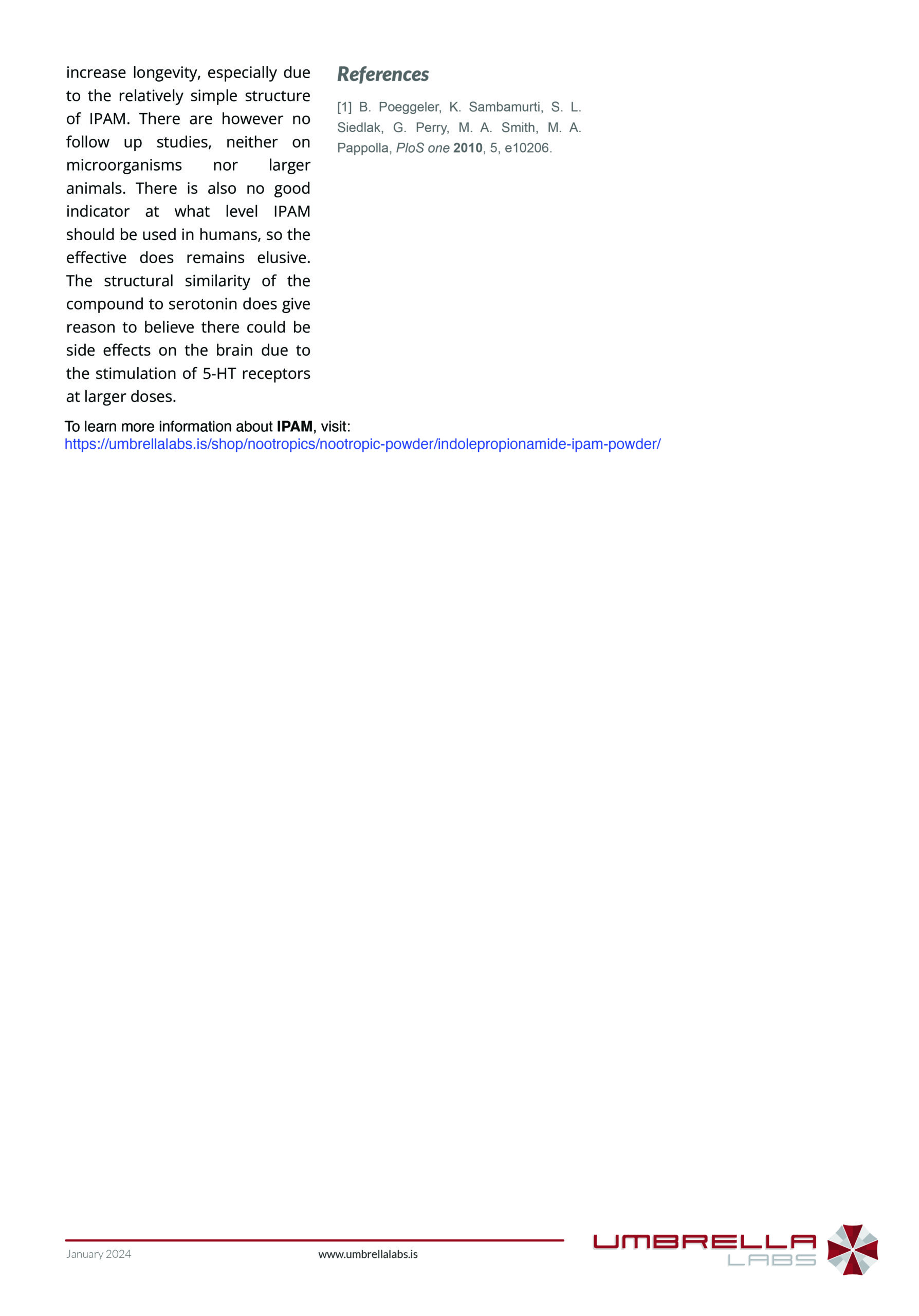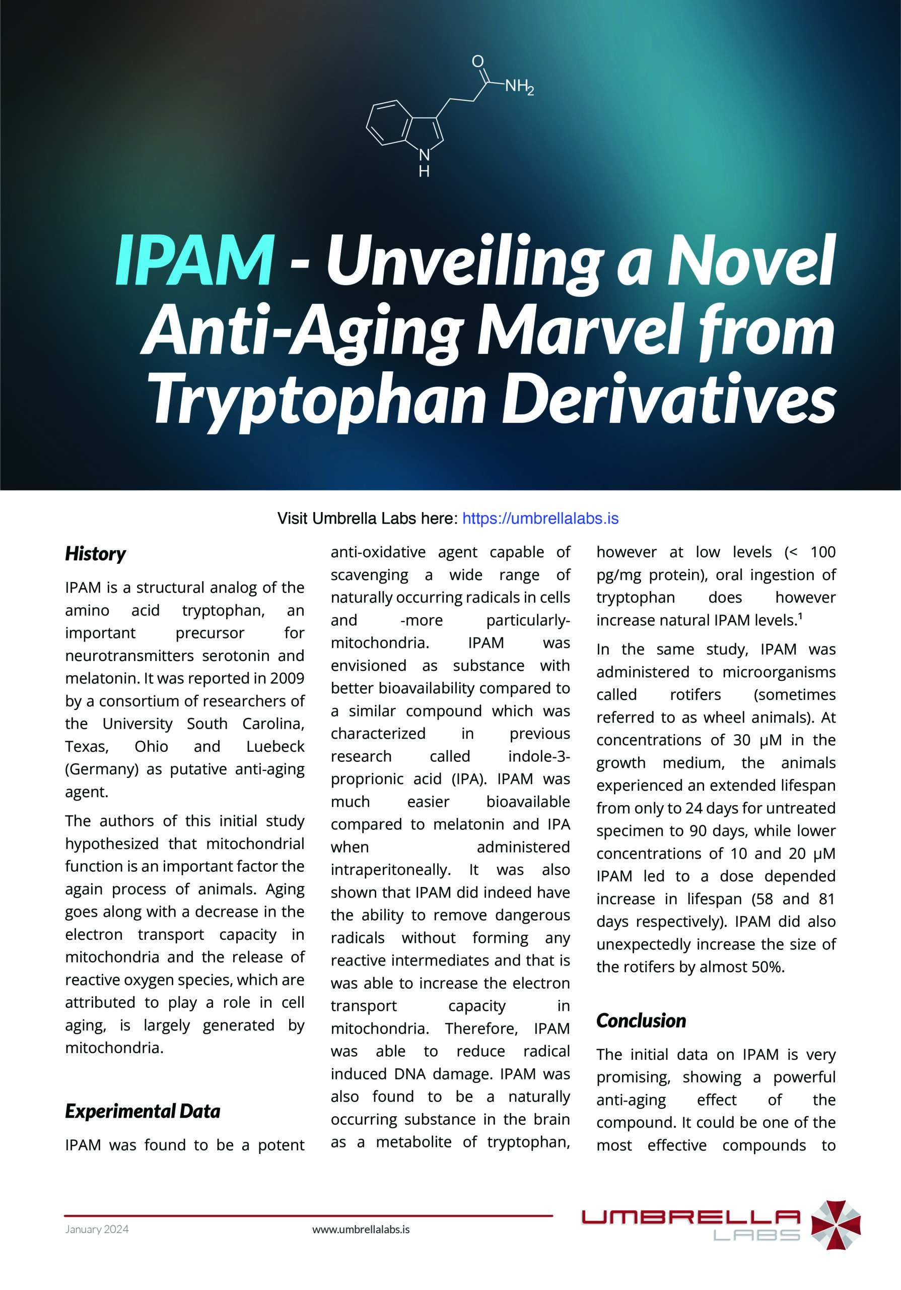 Indolepropionamide (IPAM) is sold for laboratory research use only. Terms of sale apply. Not for human consumption, nor medical, veterinary, or household uses. Please familiarize yourself with our Terms & Conditions prior to ordering.